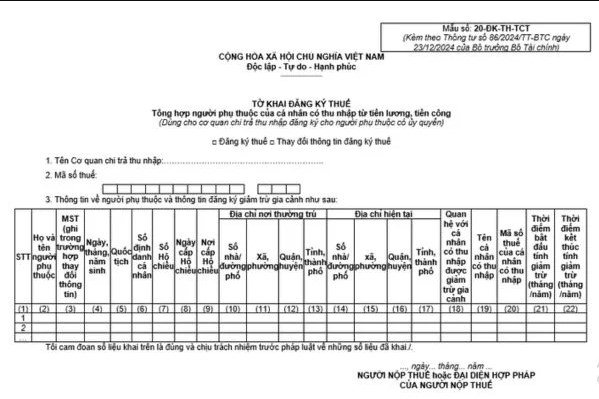 - Bản đăng ký người phụ thuộc theo mẫu số 07/ĐK-NPT-TNCN ban hành kèm theo tại Phụ lục II Thông tư 80/2021/TT-BTC