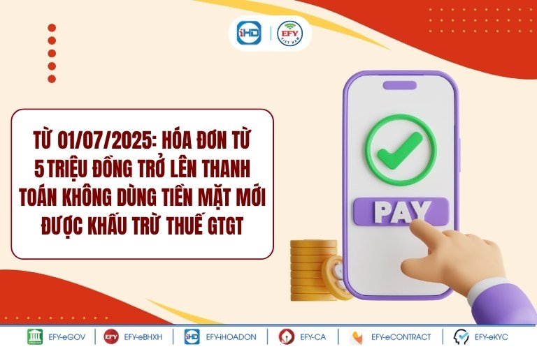Nghị định 181/2025/NĐ-CP có hiệu lực từ ngày 01/07/2025 quy định chi tiết một số điểm mới liên quan đến luật thuế GTGT. Trong đó, hóa đơn có giá trị 5 triệu đồng trở lên chỉ được khấu trừ thuế GTGT khi thanh toán không dùng tiền mặt. Cùng tìm hiểu rõ hơn qua bài viết dưới đây của iHOADON nhé.