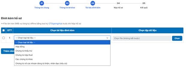 Tiến hành đính kèm hồ sơ, bao gồm: