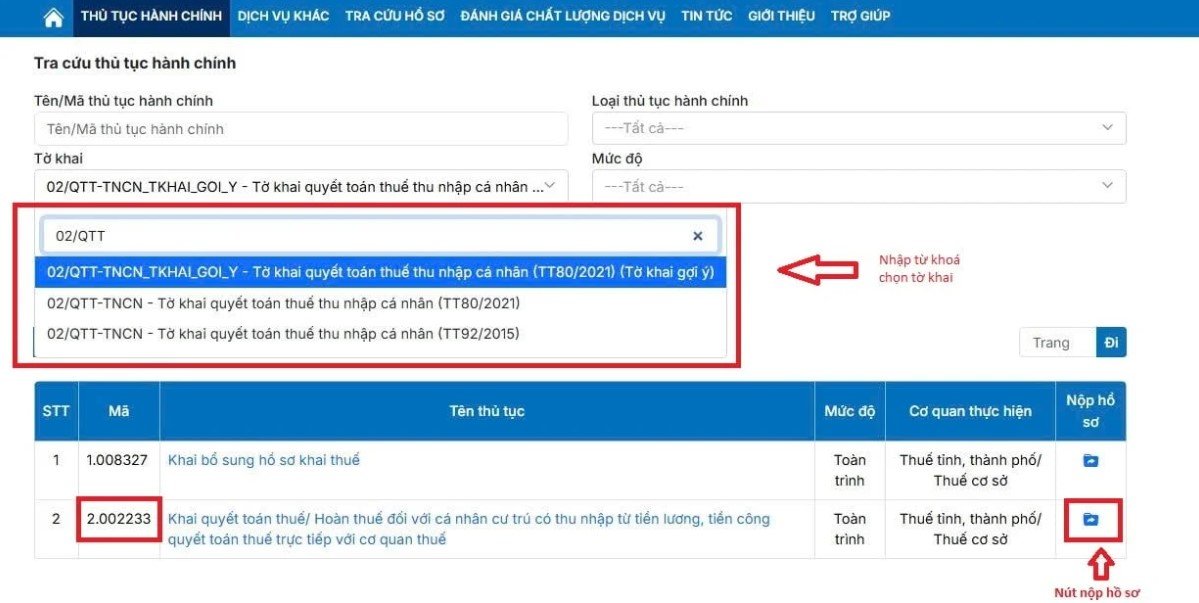 - Chọn tờ khai quyết toán thuế TNCN dành cho cá nhân tự quyết toán - Tờ khai 02/QTT-TNCN (TT08/2021)