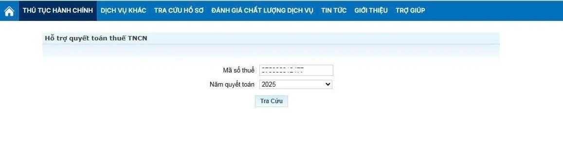 - Chọn kỳ khai thuế 2025 => Chọn tra cứu