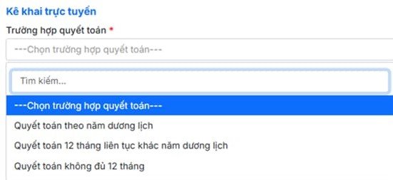 + Trường hợp quyết toán: lựa chọn trường hợp quyết toán tương ứng