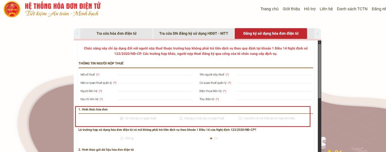 Bước 2: Chọn hình thức hóa đơn điện tử