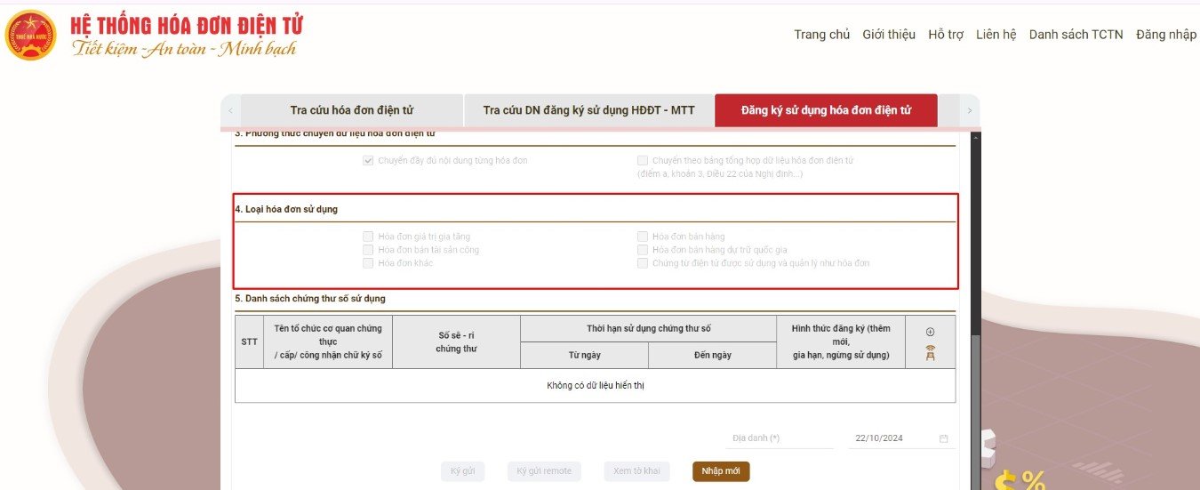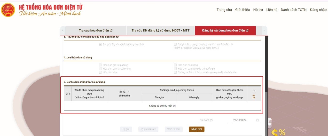 Bước 6: Khai báo chứng thư số sử dụng (nếu thuộc trường hợp cần ký số).